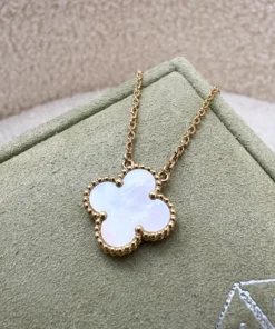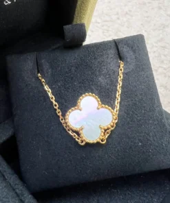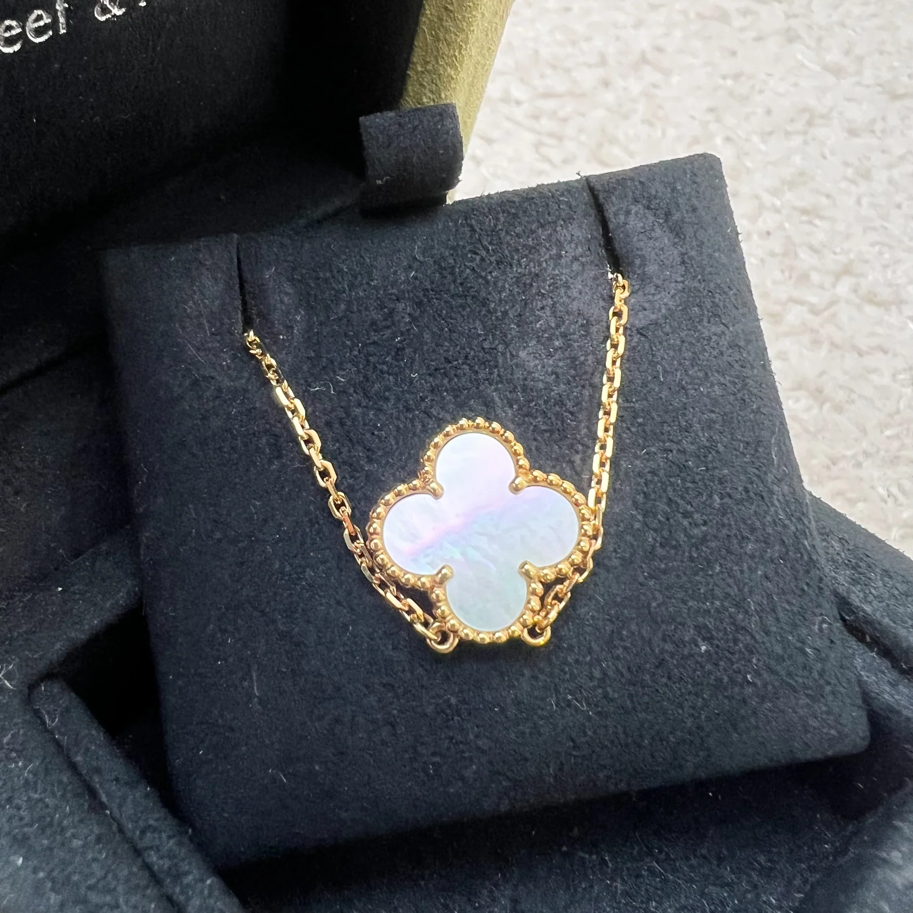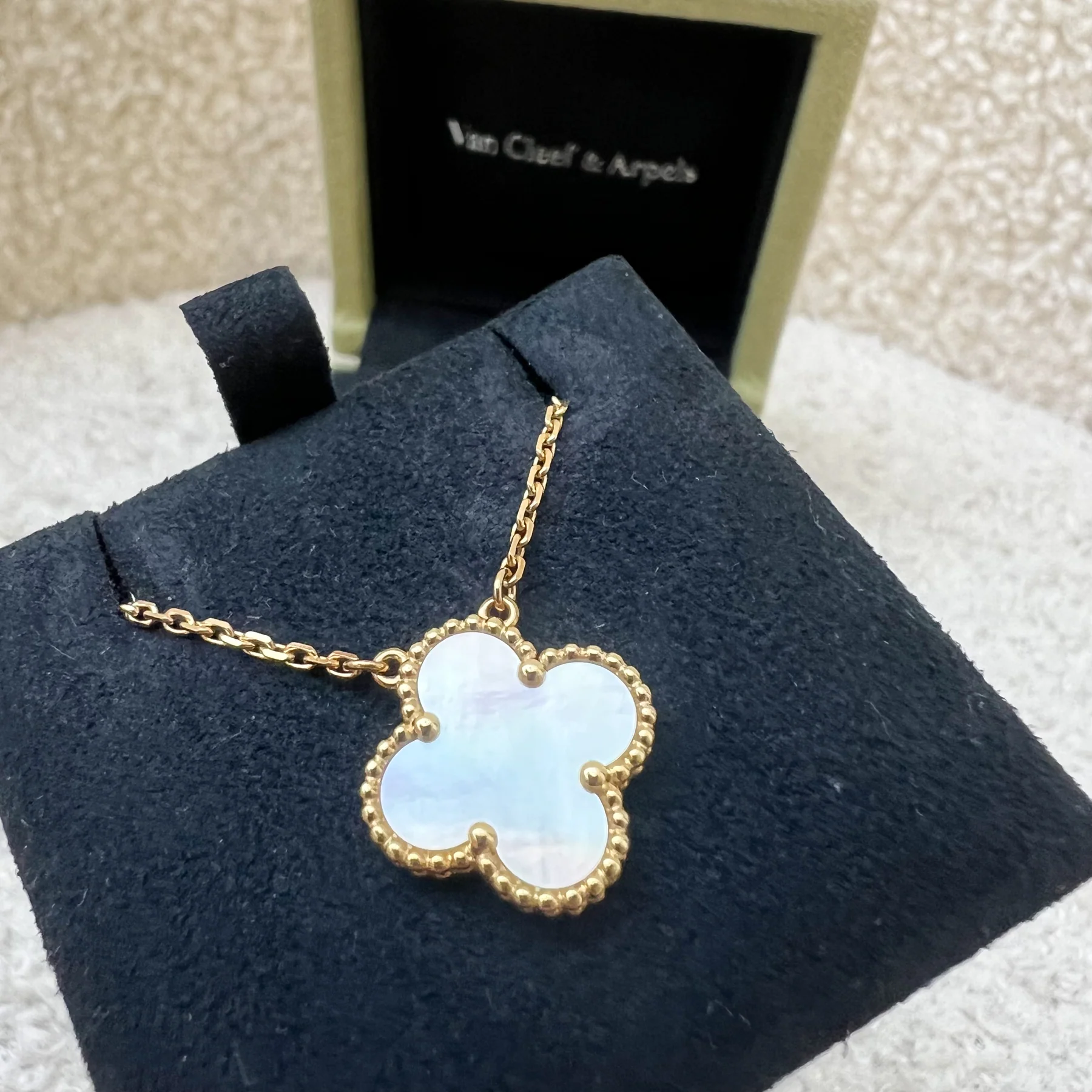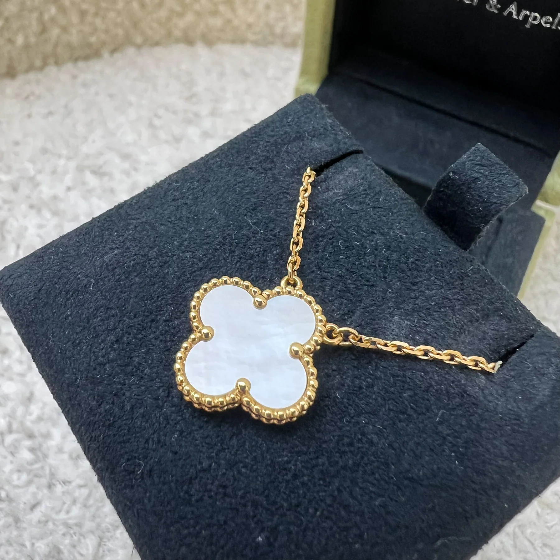 VCA Vintage Alhambra Pendant Necklace with White Mother of Pearl MOP in 18K Yellow Gold